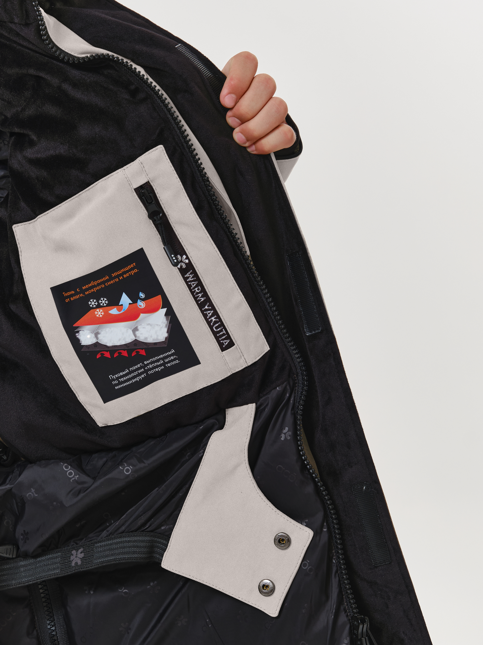 Подкладка из вельбоа добавляет комфорт внутреннему пакету во время эксплуатации. Ткань верха – морозостойкая мембранная ткань – защищает от ветра, влаги и снега, и при этом дышит, не создавая парниковый эффект.