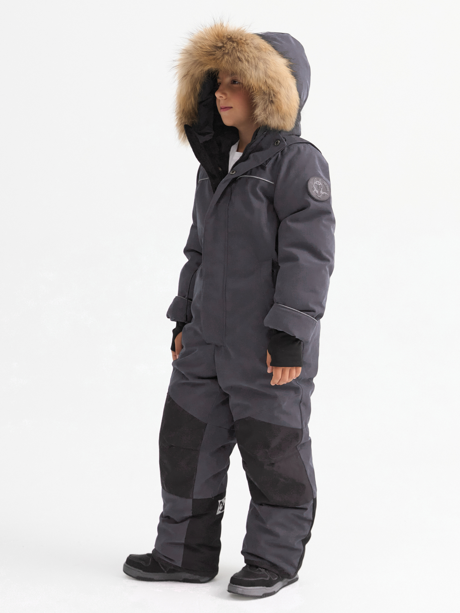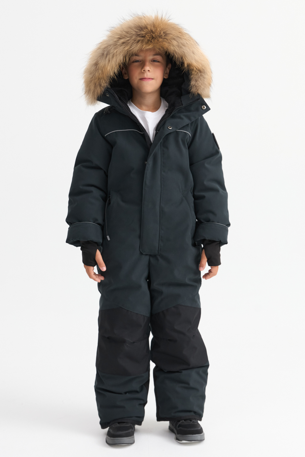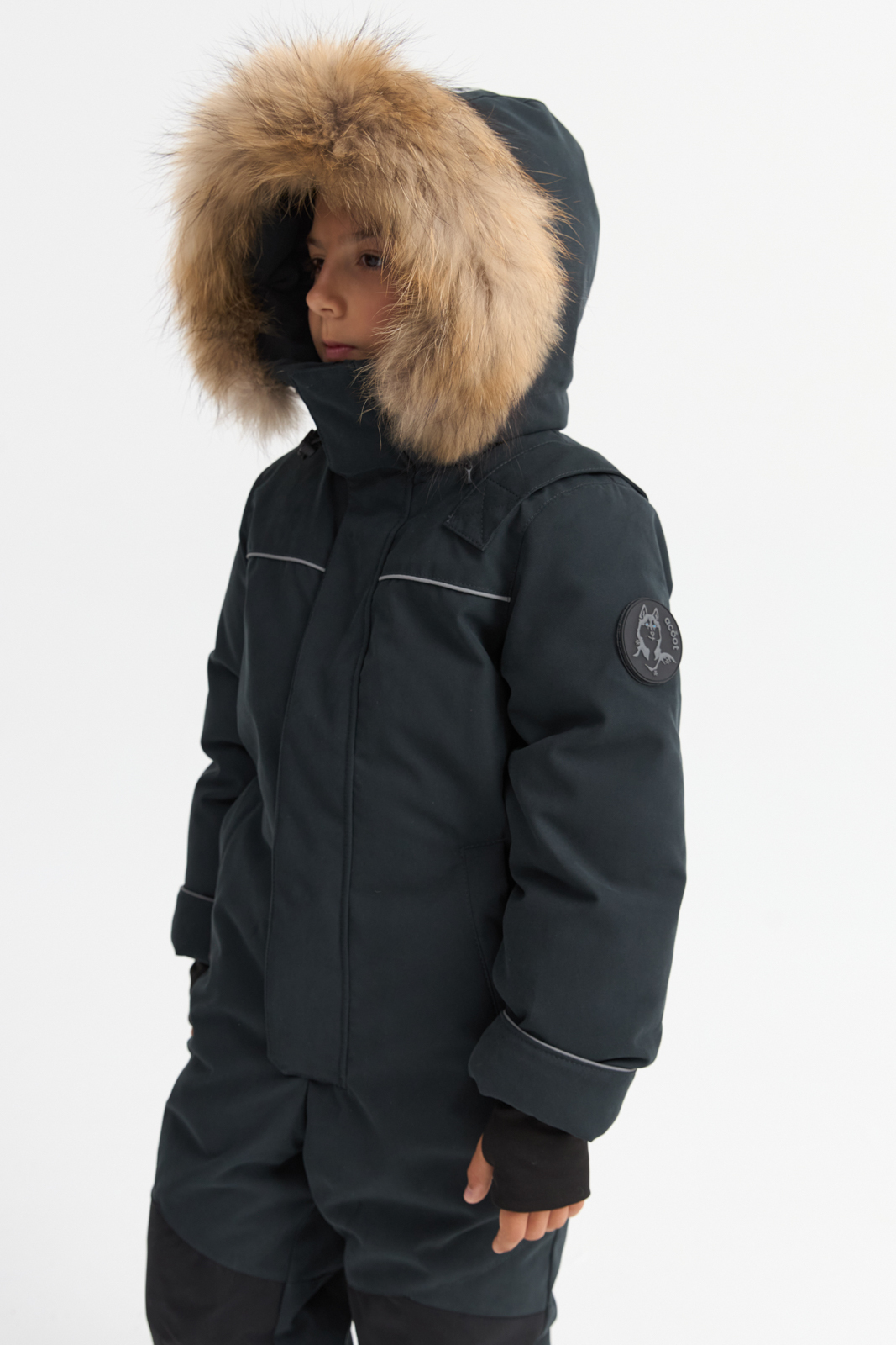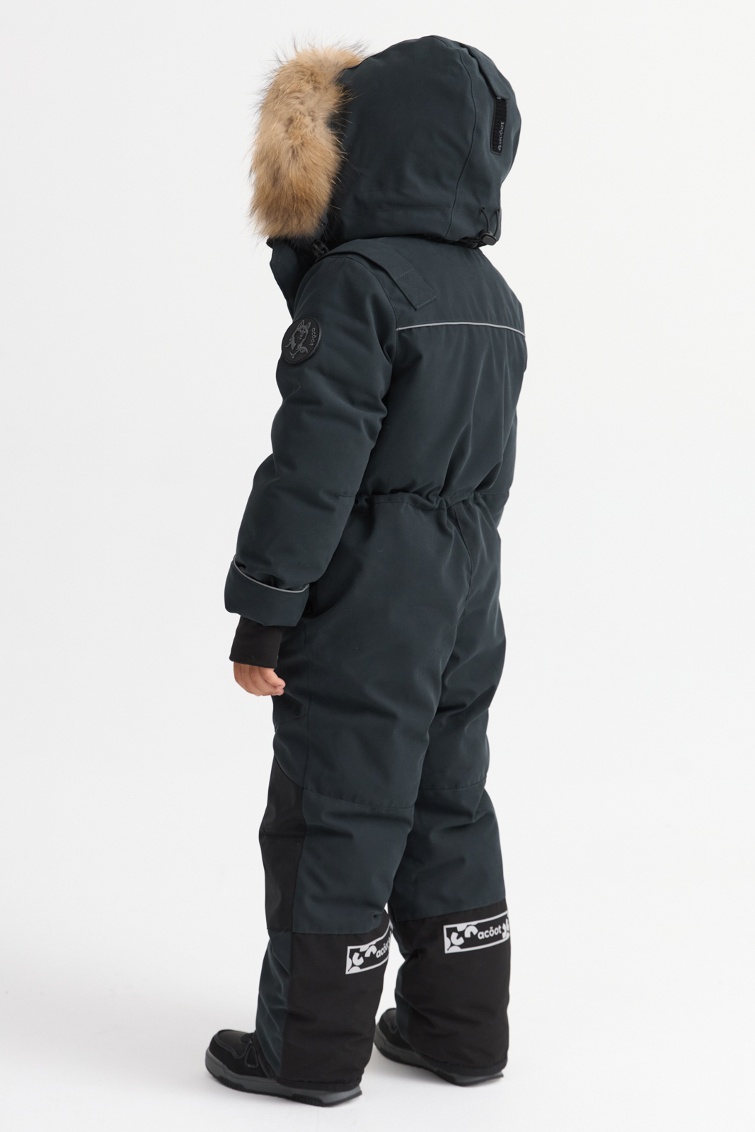 Детский пуховой комбинезон в стиле « Унисекс» для мальчиков и девочек. Модель утеплена пухом водоплавающей птицы, усилена технологичным синтетическим материалом СЛАЙТЕКС® Premium в местах возможного образования «мостика холода». Наколенники и низ брюк выполнены с усилением Cordura® - комбинезон не будет истираться от частых хождений ребенка на коленках.