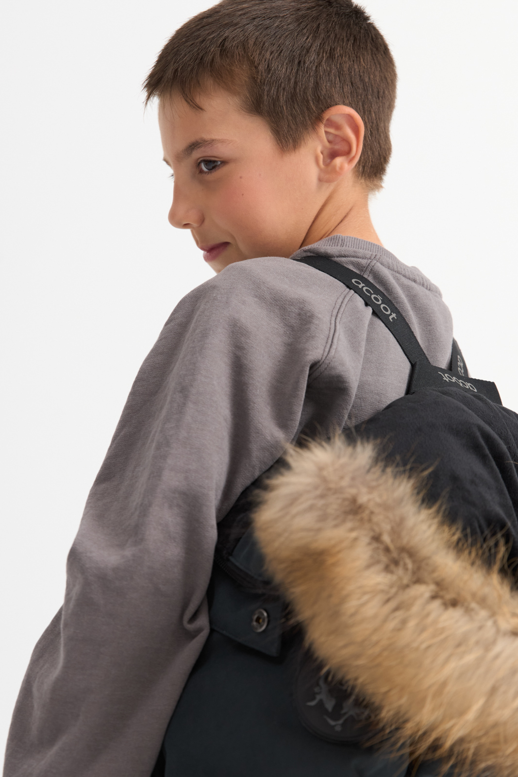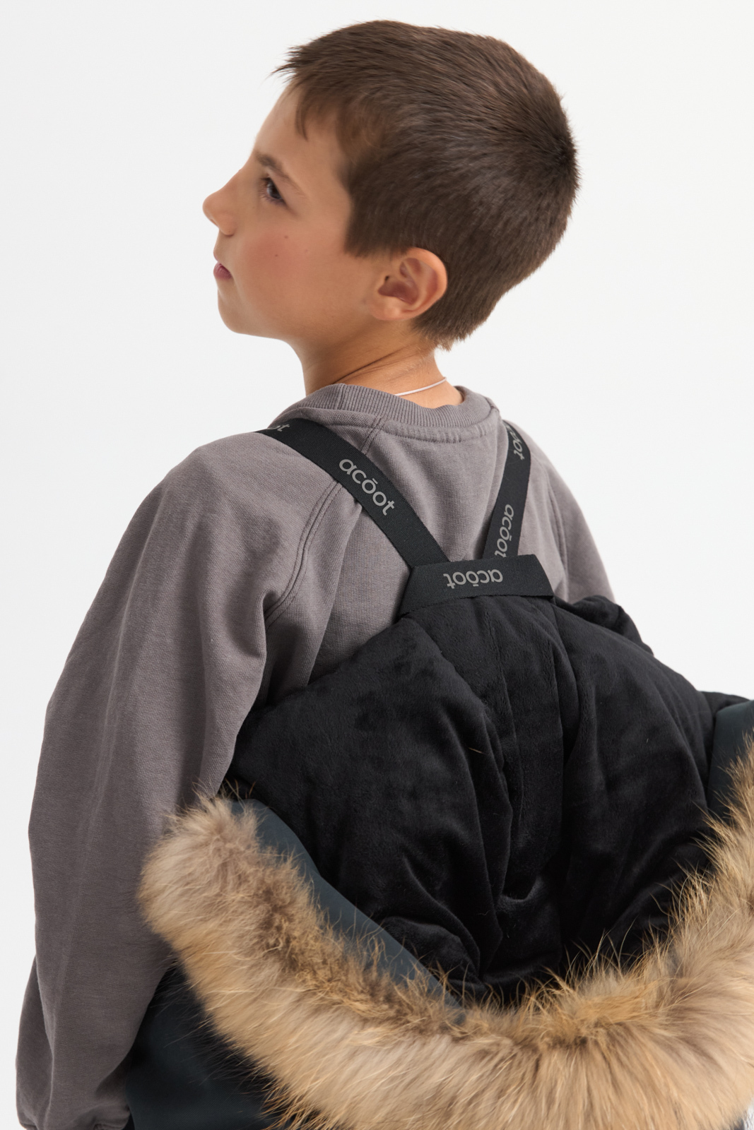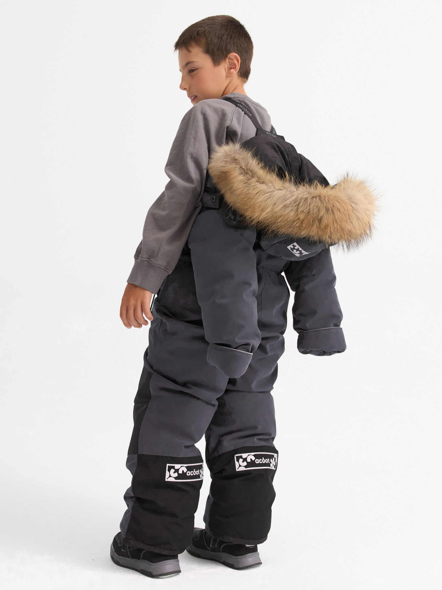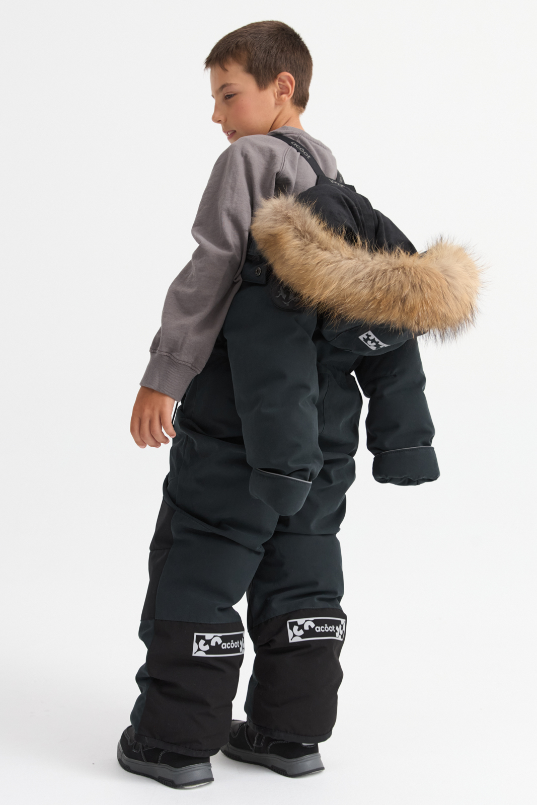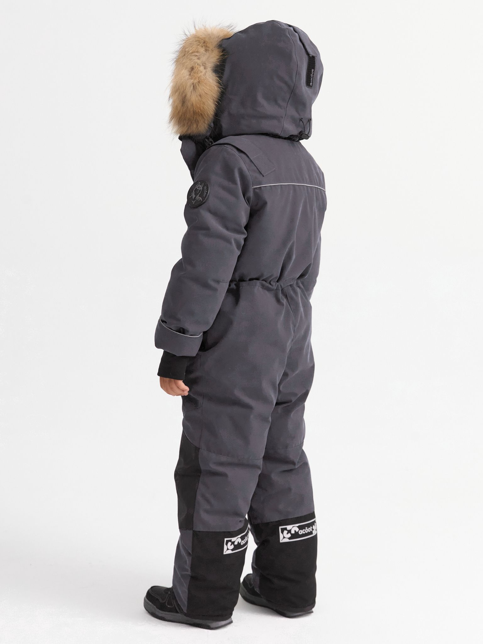Детский пуховой комбинезон в стиле « Унисекс» для мальчиков и девочек. Модель утеплена пухом водоплавающей птицы, усилена технологичным синтетическим материалом СЛАЙТЕКС® Premium в местах возможного образования «мостика холода». Наколенники и низ брюк выполнены с усилением Cordura® - комбинезон не будет истираться от частых хождений ребенка на коленках.