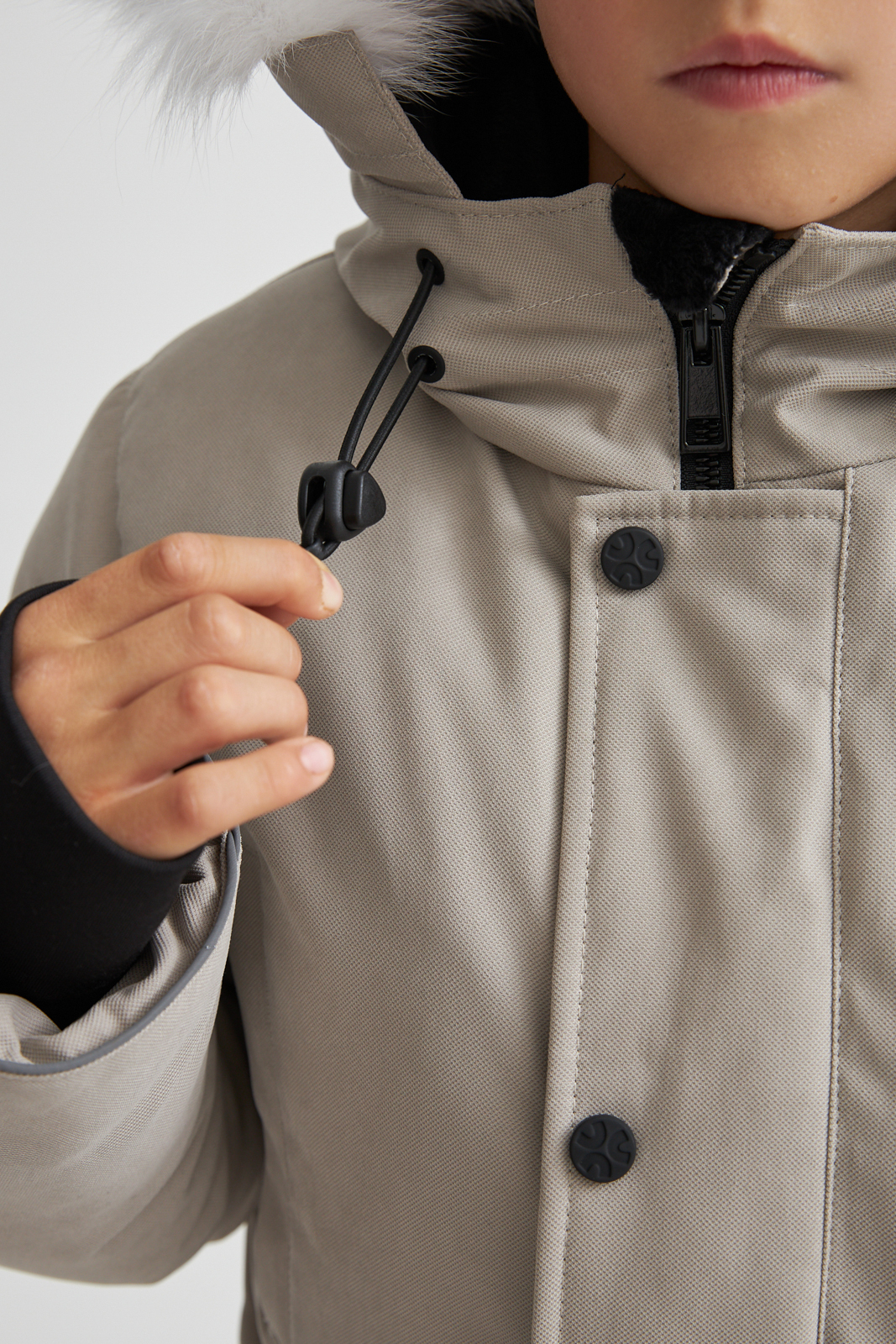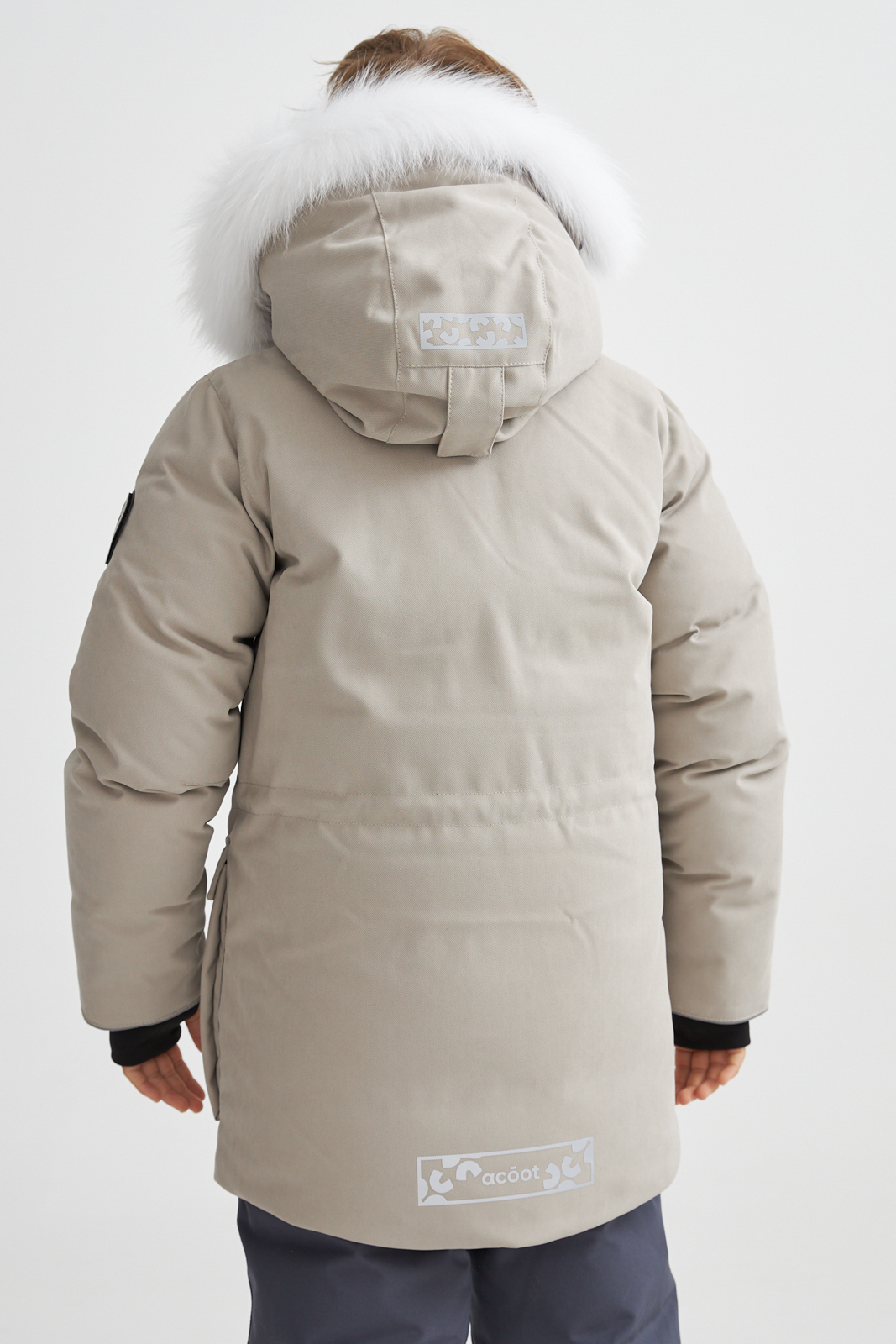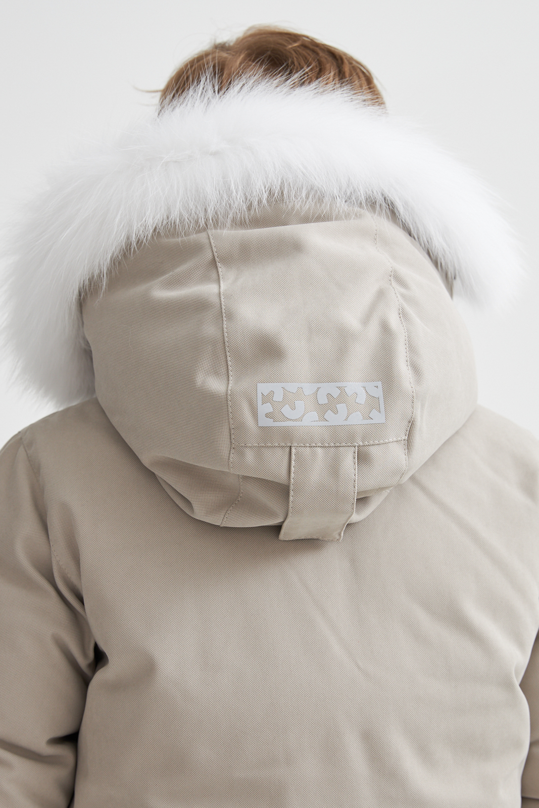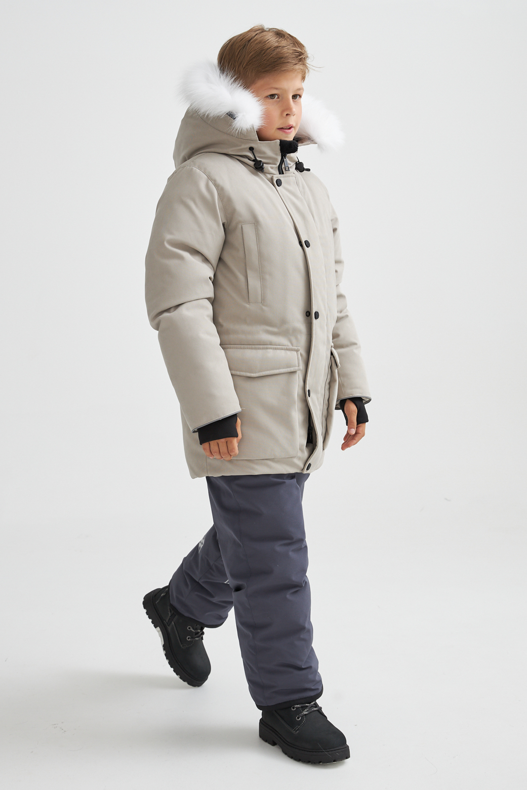 Очень удобный и практичный – комфортная конструкция рукава с возможностью регулировки по росту (на вырост), оптимальная длина , кулиска по талии , регулируемый капюшон со съёмным натуральным мехом.