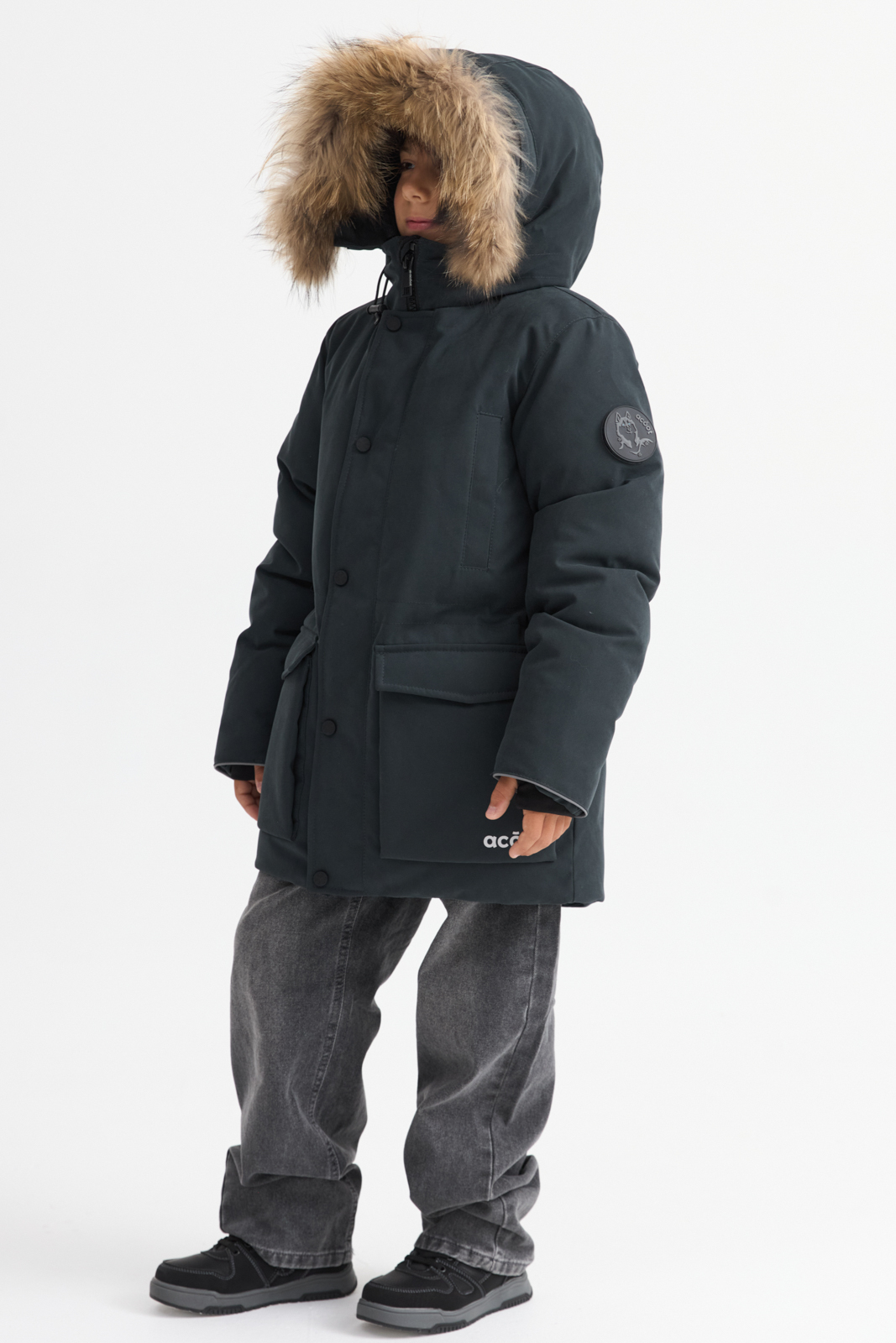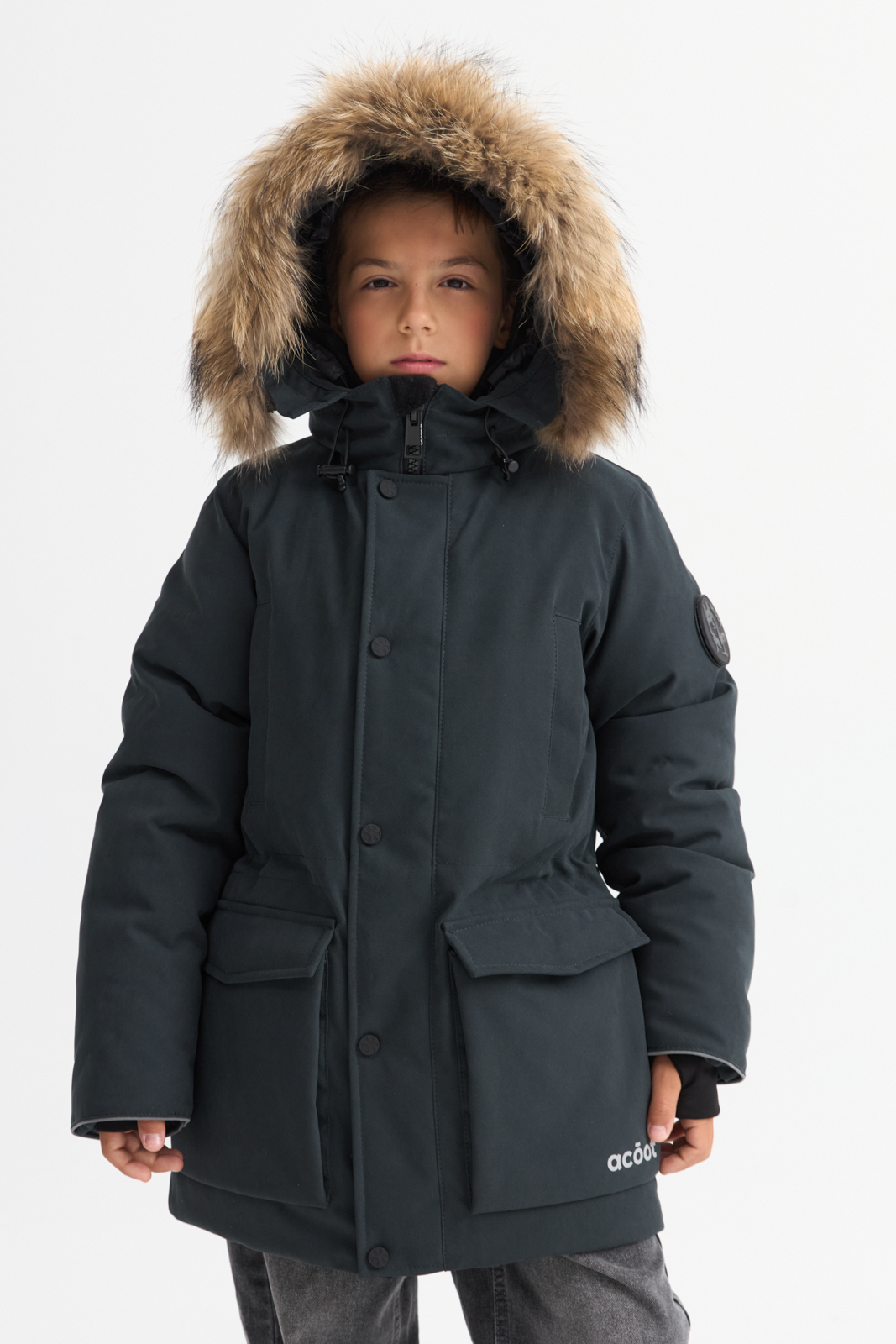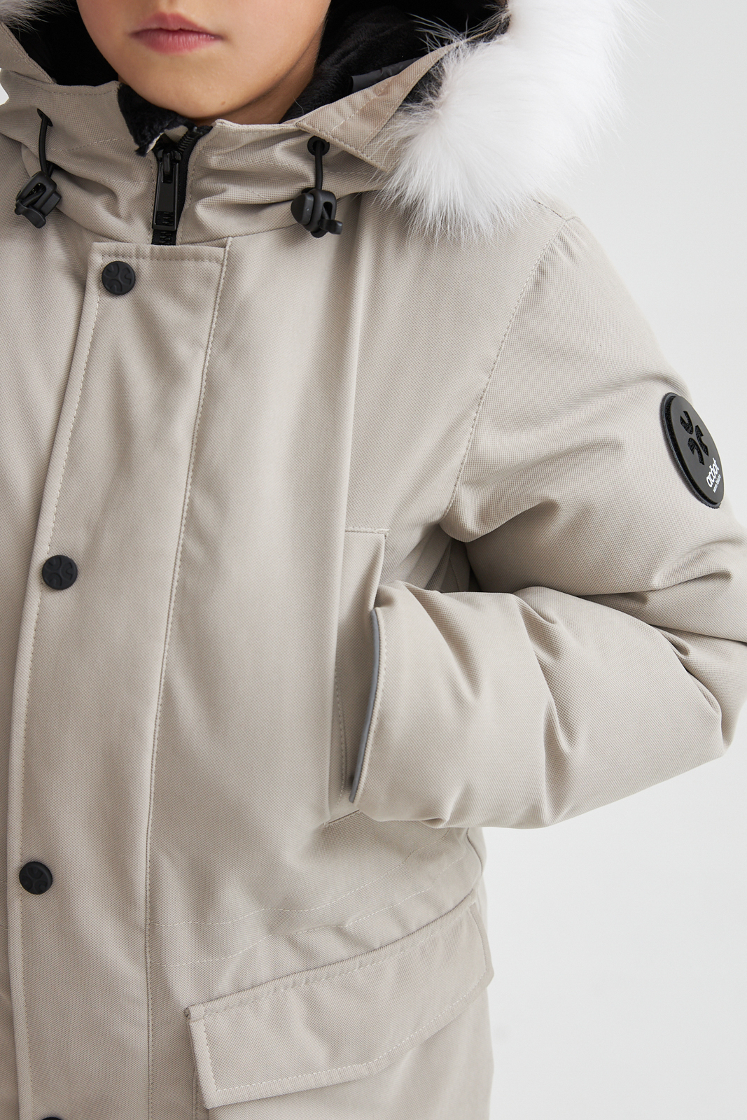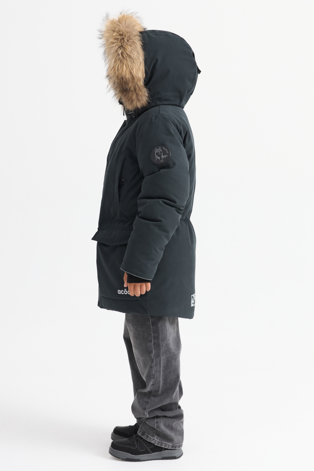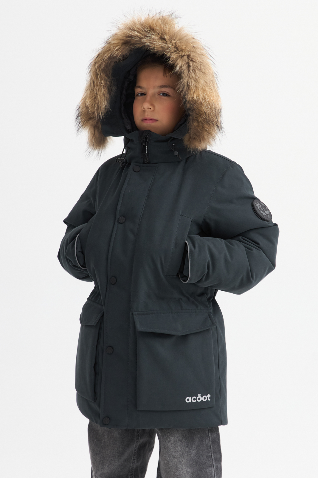 Очень удобный и практичный – комфортная конструкция рукава с возможностью регулировки по росту (на вырост), оптимальная длина , кулиска по талии , регулируемый капюшон со съёмным натуральным мехом.