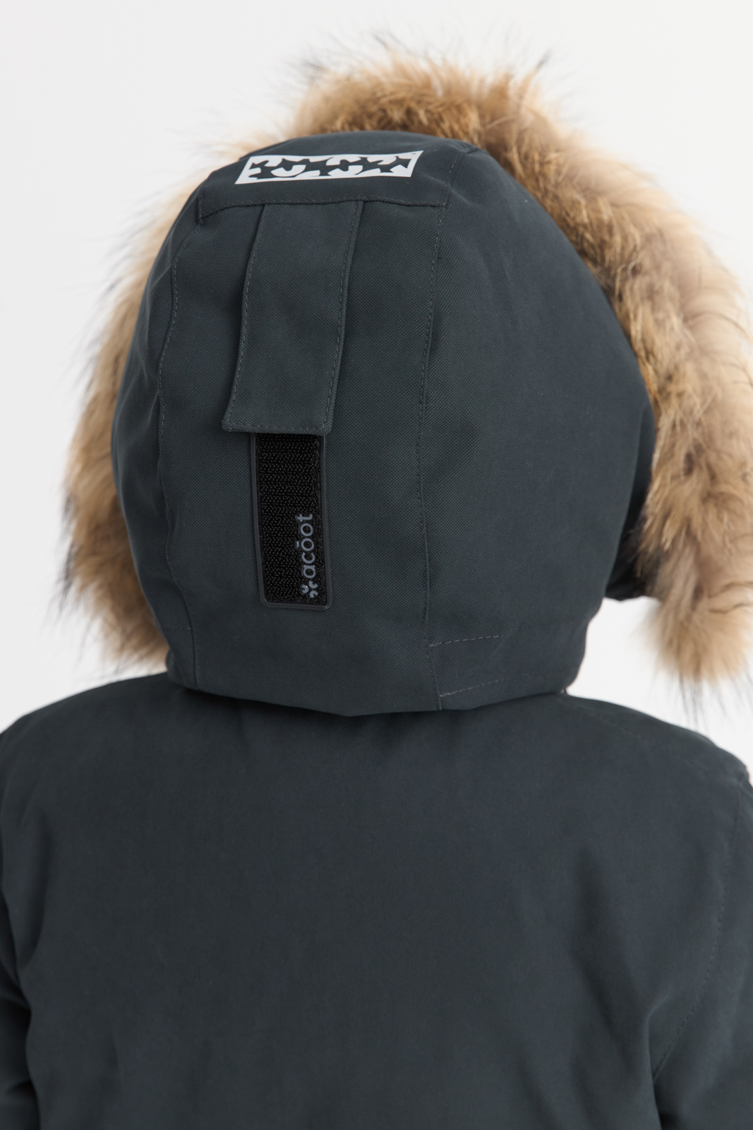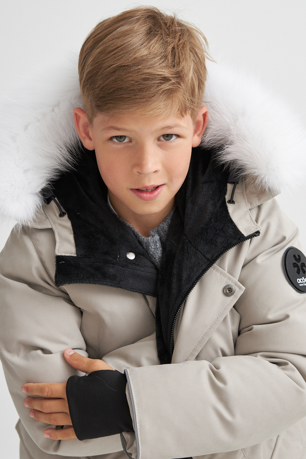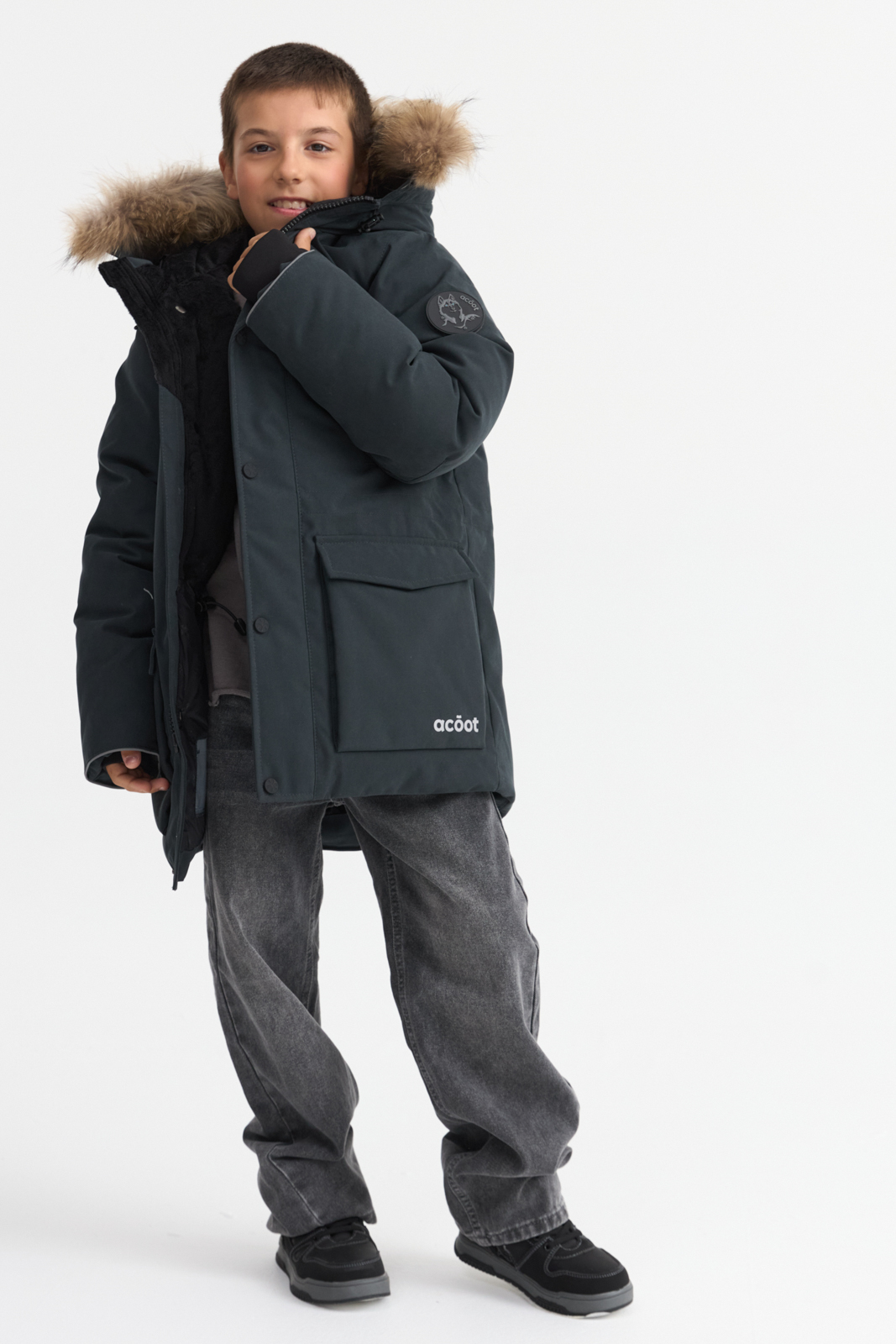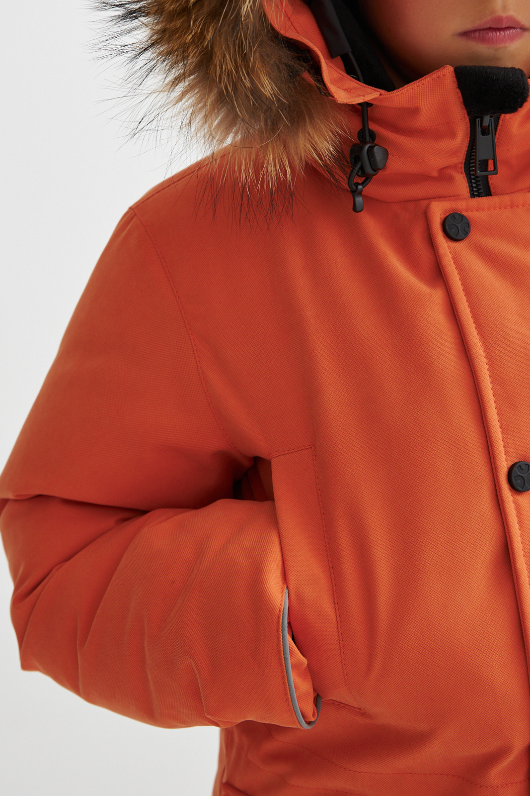 Очень удобный и практичный – комфортная конструкция рукава с возможностью регулировки по росту (на вырост), оптимальная длина , кулиска по талии , регулируемый капюшон со съёмным натуральным мехом.