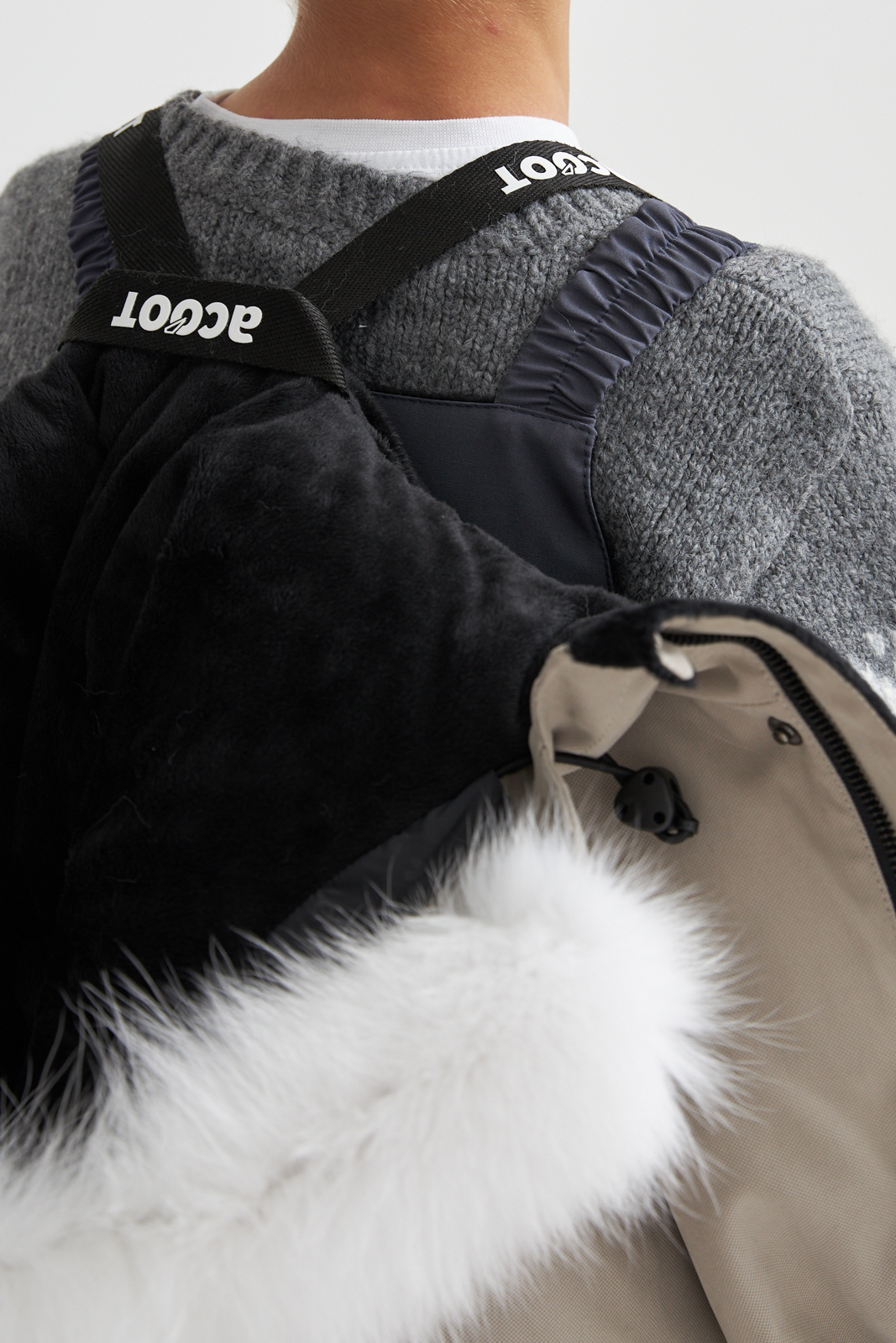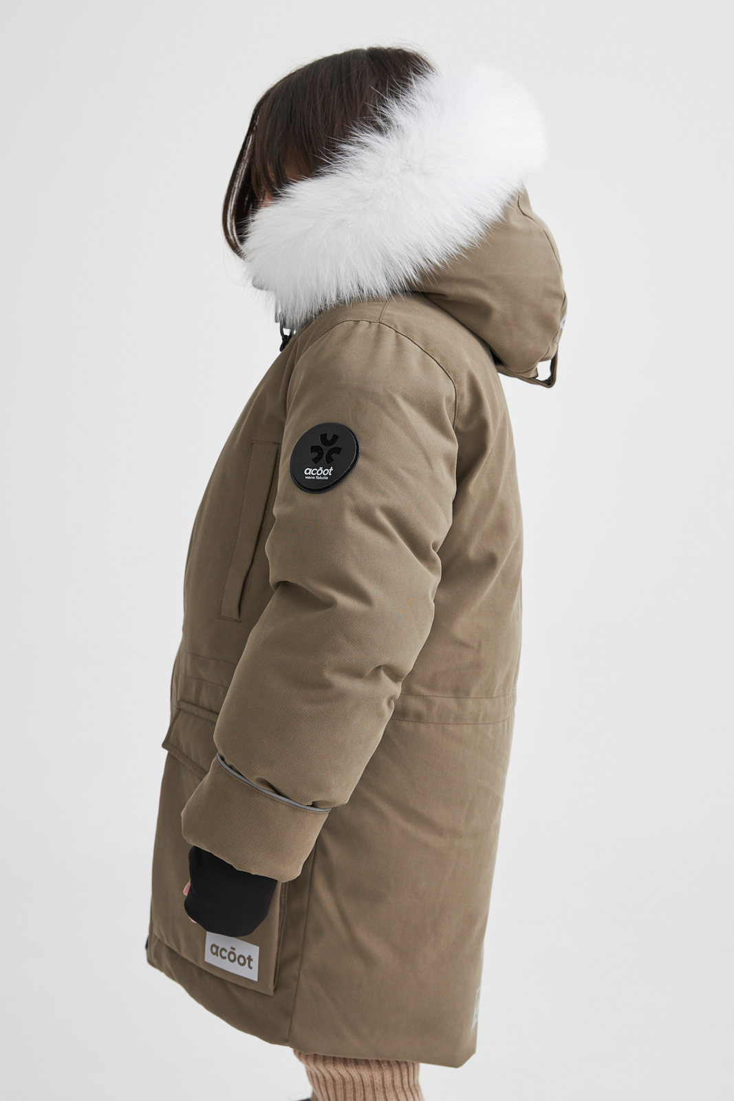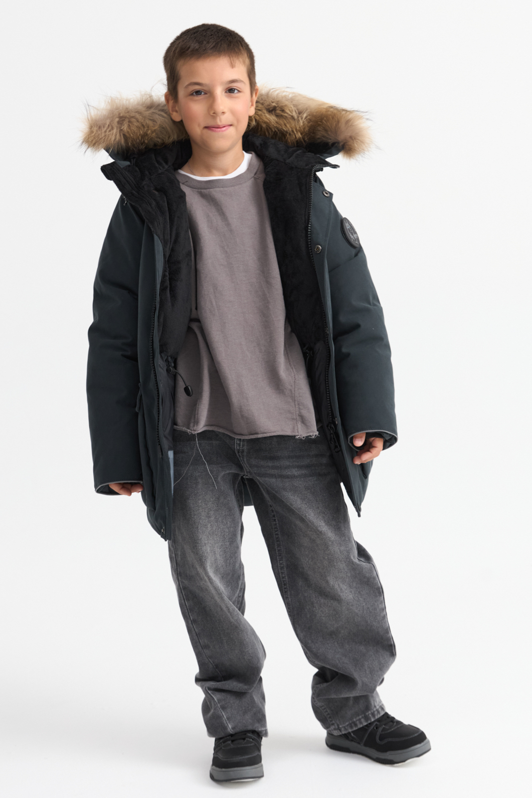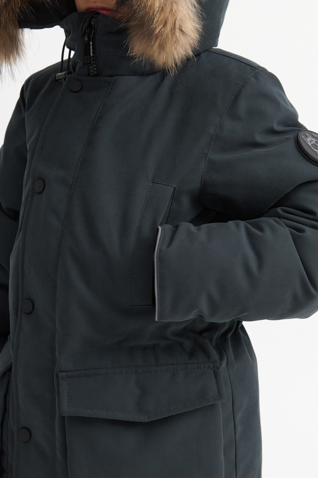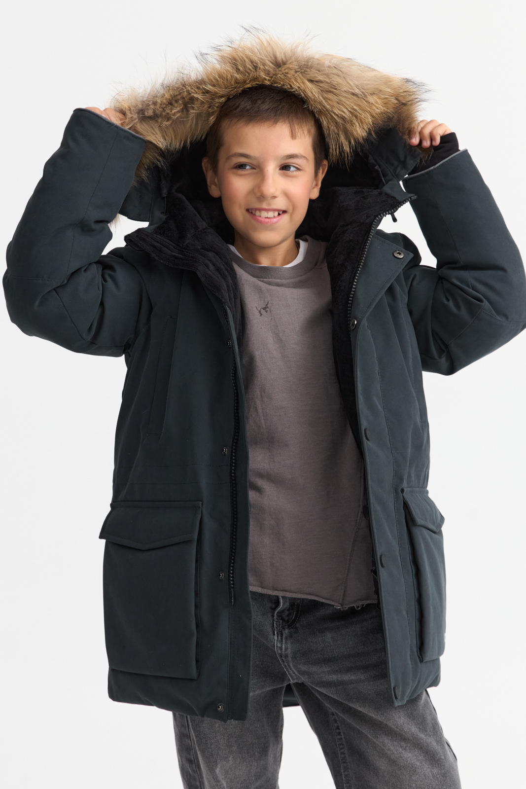 Очень удобный и практичный – комфортная конструкция рукава с возможностью регулировки по росту (на вырост), оптимальная длина , кулиска по талии , регулируемый капюшон со съёмным натуральным мехом.