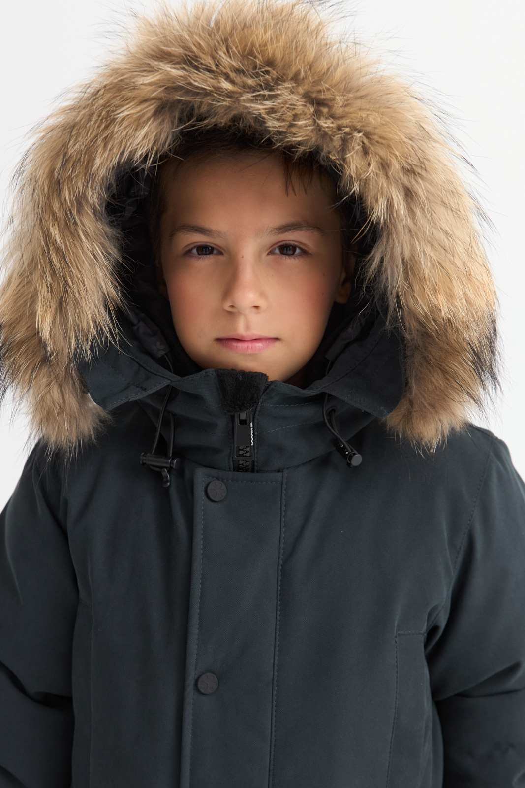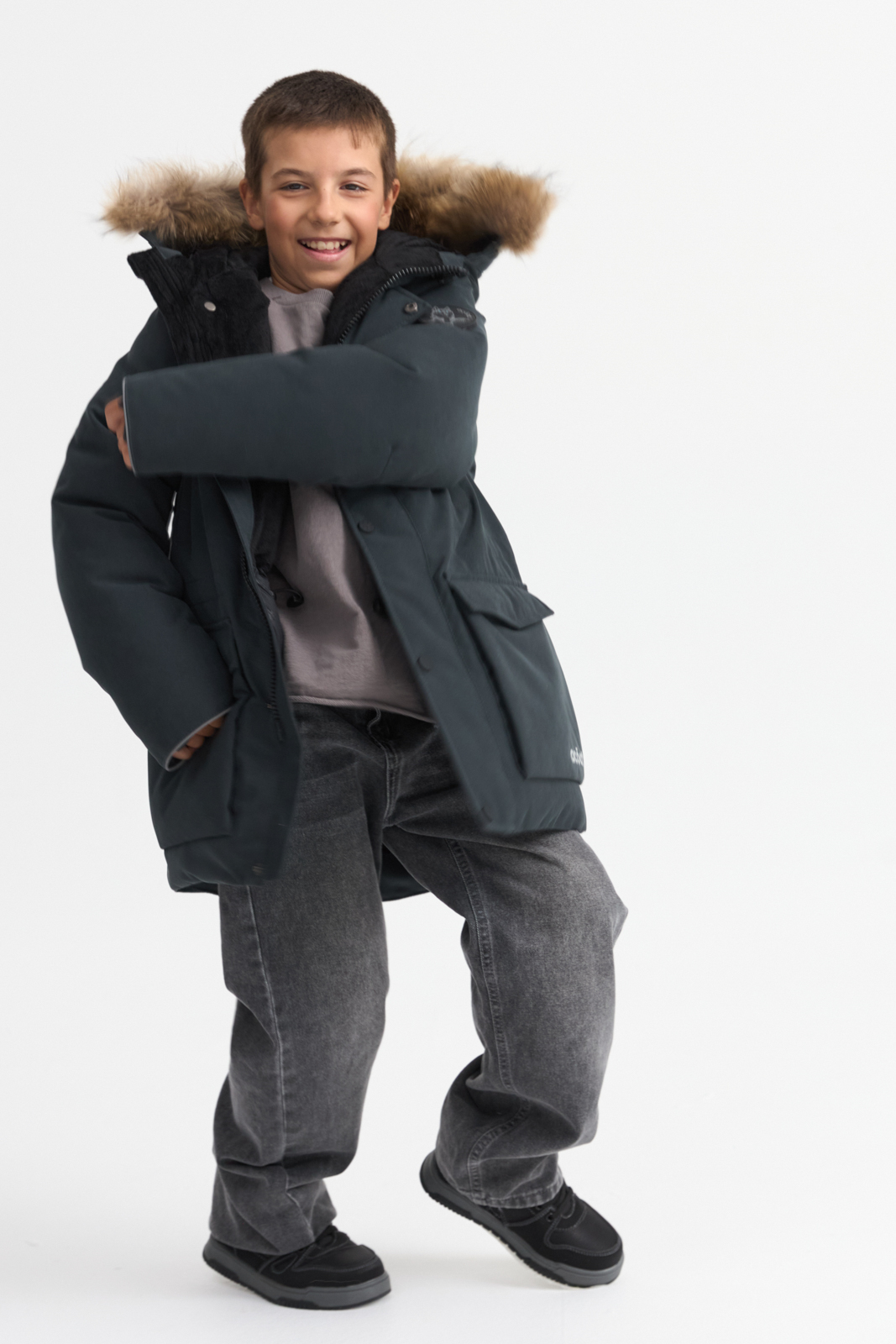 Детский пуховик продуман до мелочей специально на холодное время года для наших самых маленьких покупателей. Очень теплый - благодаря утеплителю из пуха водоплавающей птицы, технологии «тёплый шов», в области плечевого пояса усиление технологичным синтетическим материалом СЛАЙТЕКС®Premium, мембранной ткани с отличными параметрами от ветра, снега и влаги, тёплой подкладки из вельбоа до талии .