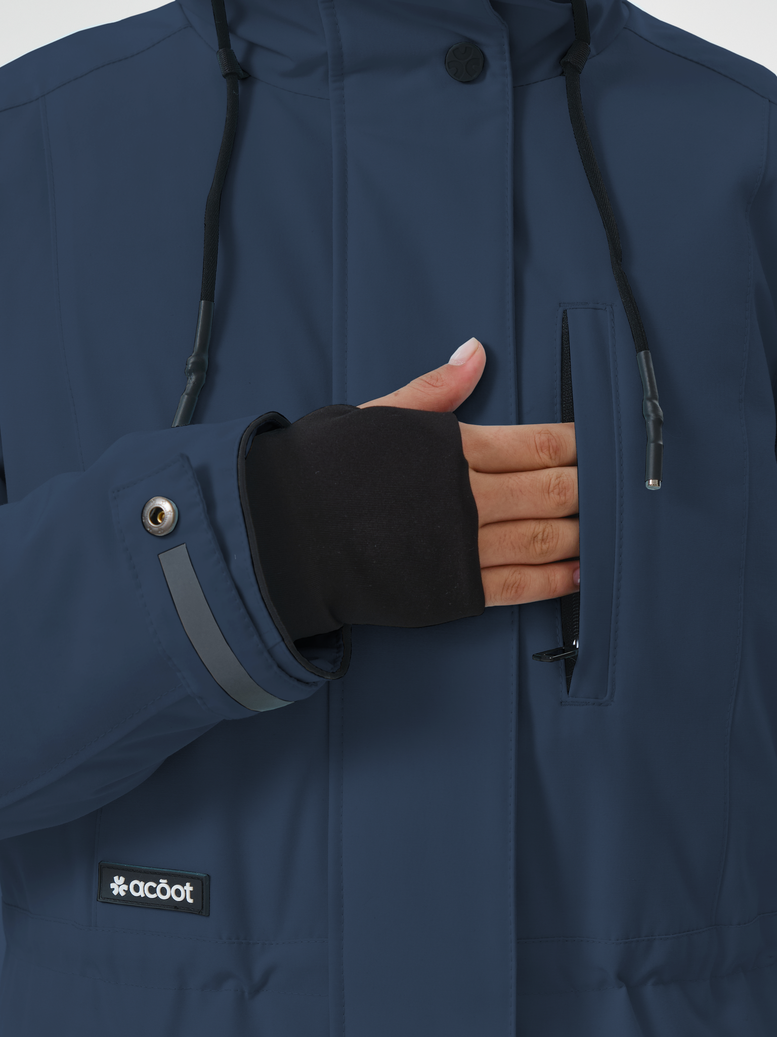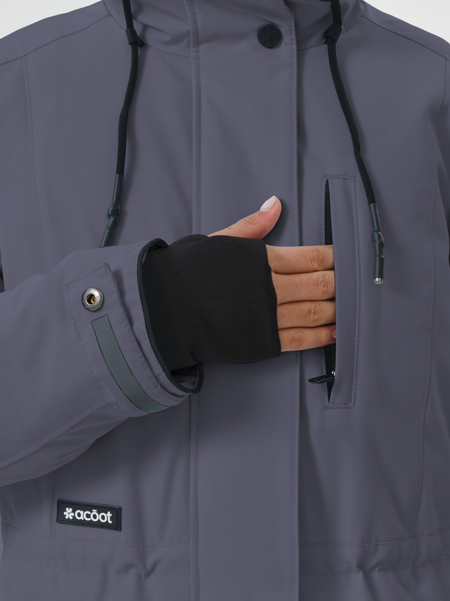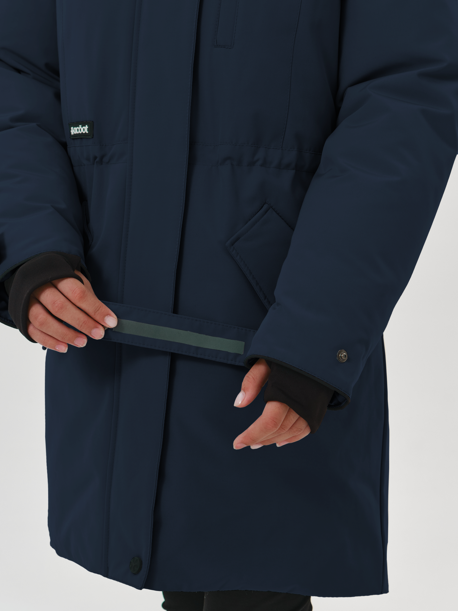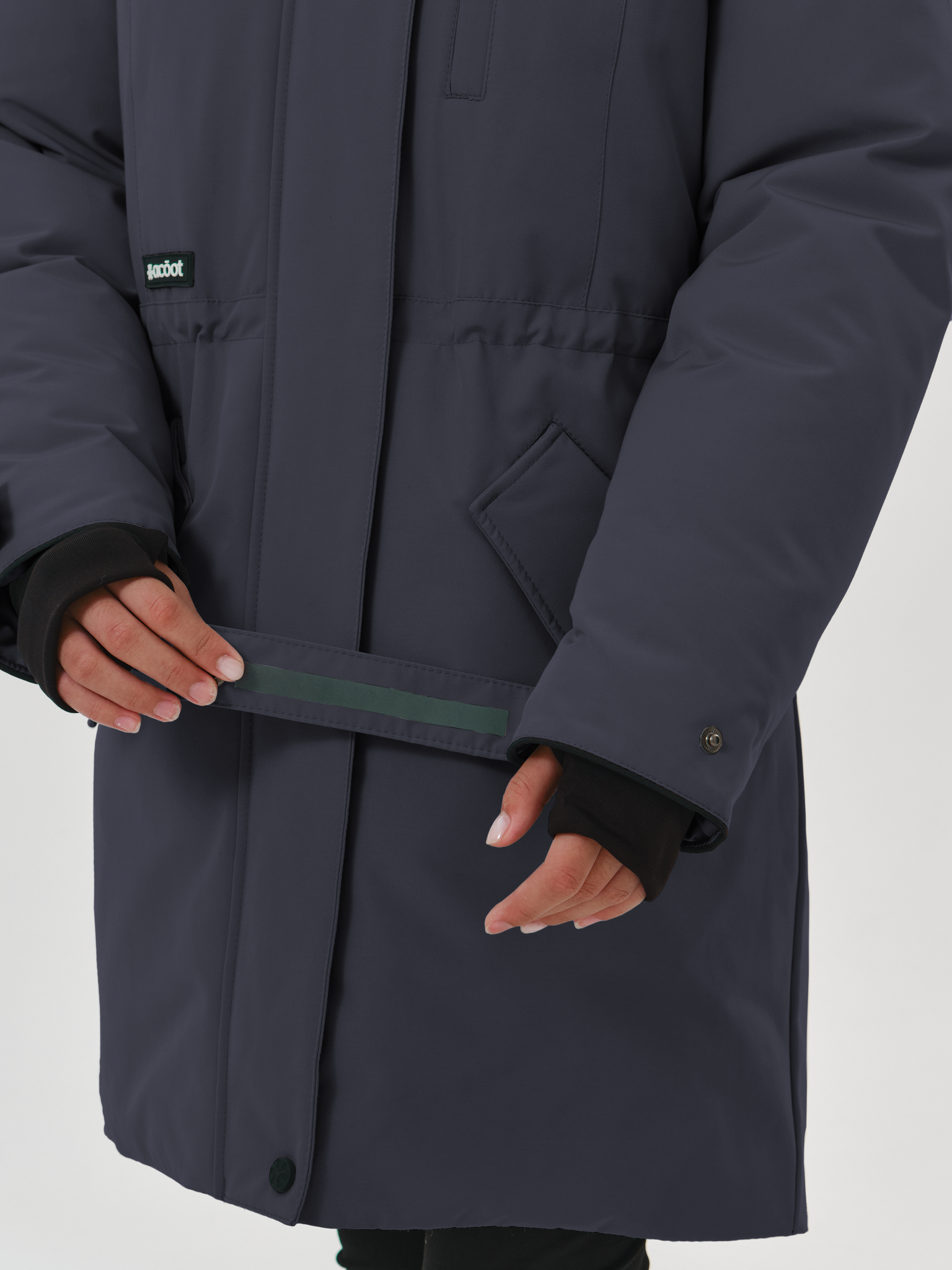 Рукав оснащен регулируемой патой с двухсторонней застёжкой. На нижней стороне паты - рефлектив, который можно применить при необходимости в тёмное время суток для безопасности.