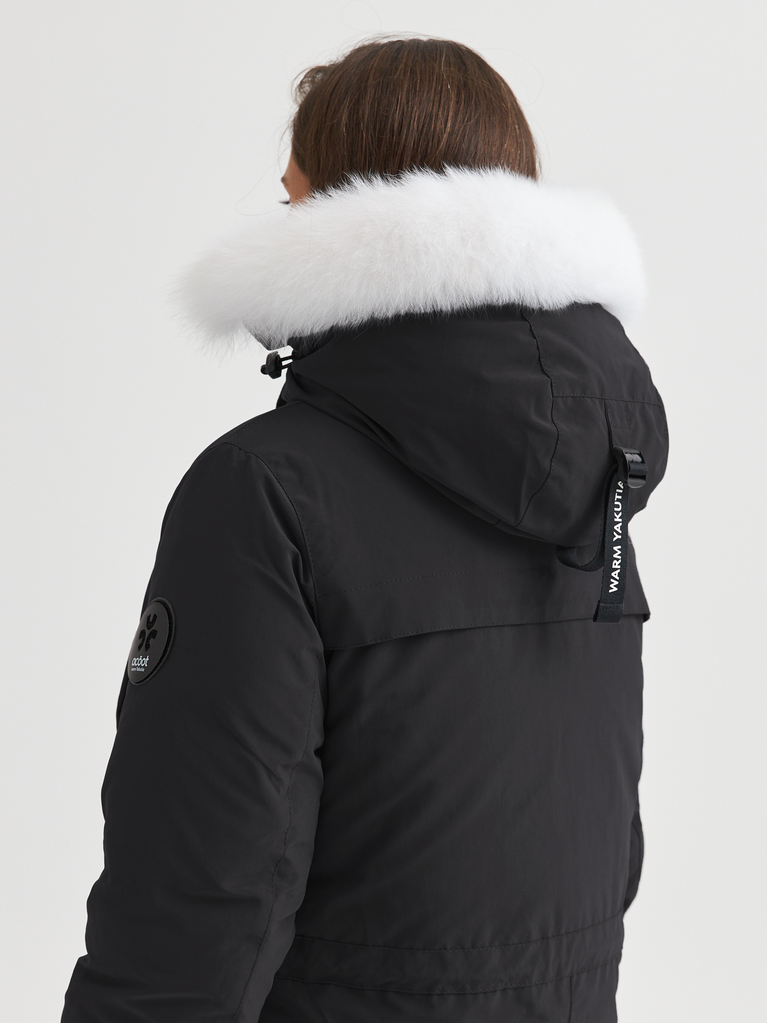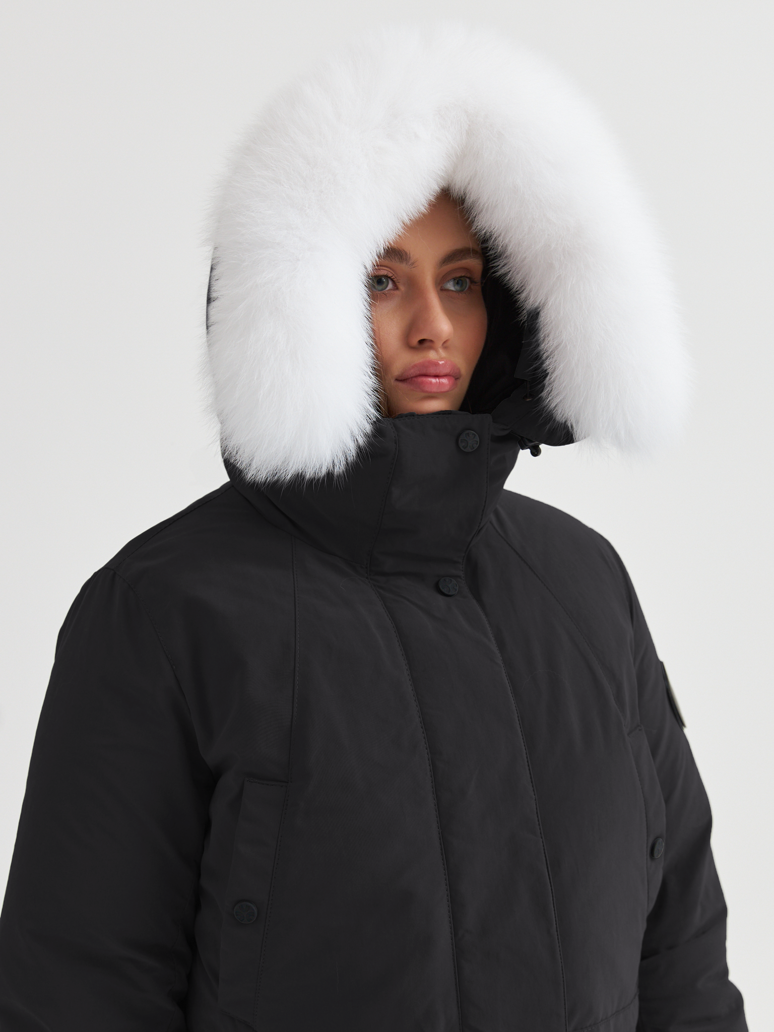 -Богатый красивый натуральный мех по отлёту капюшона.