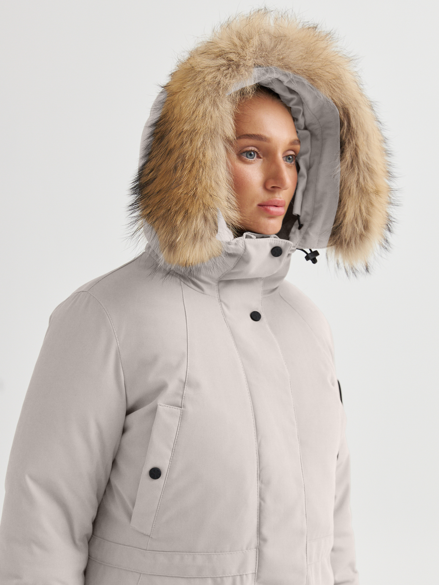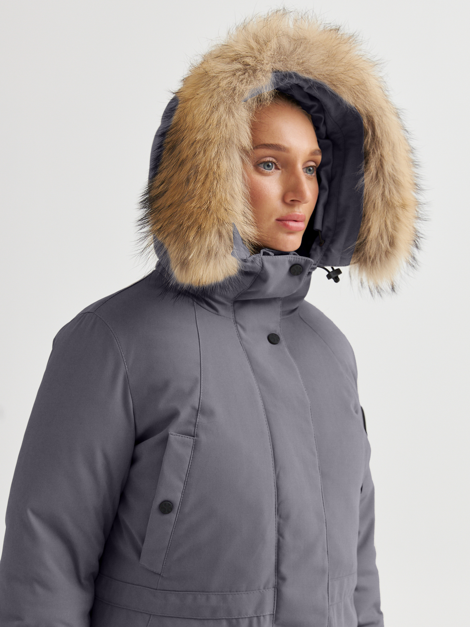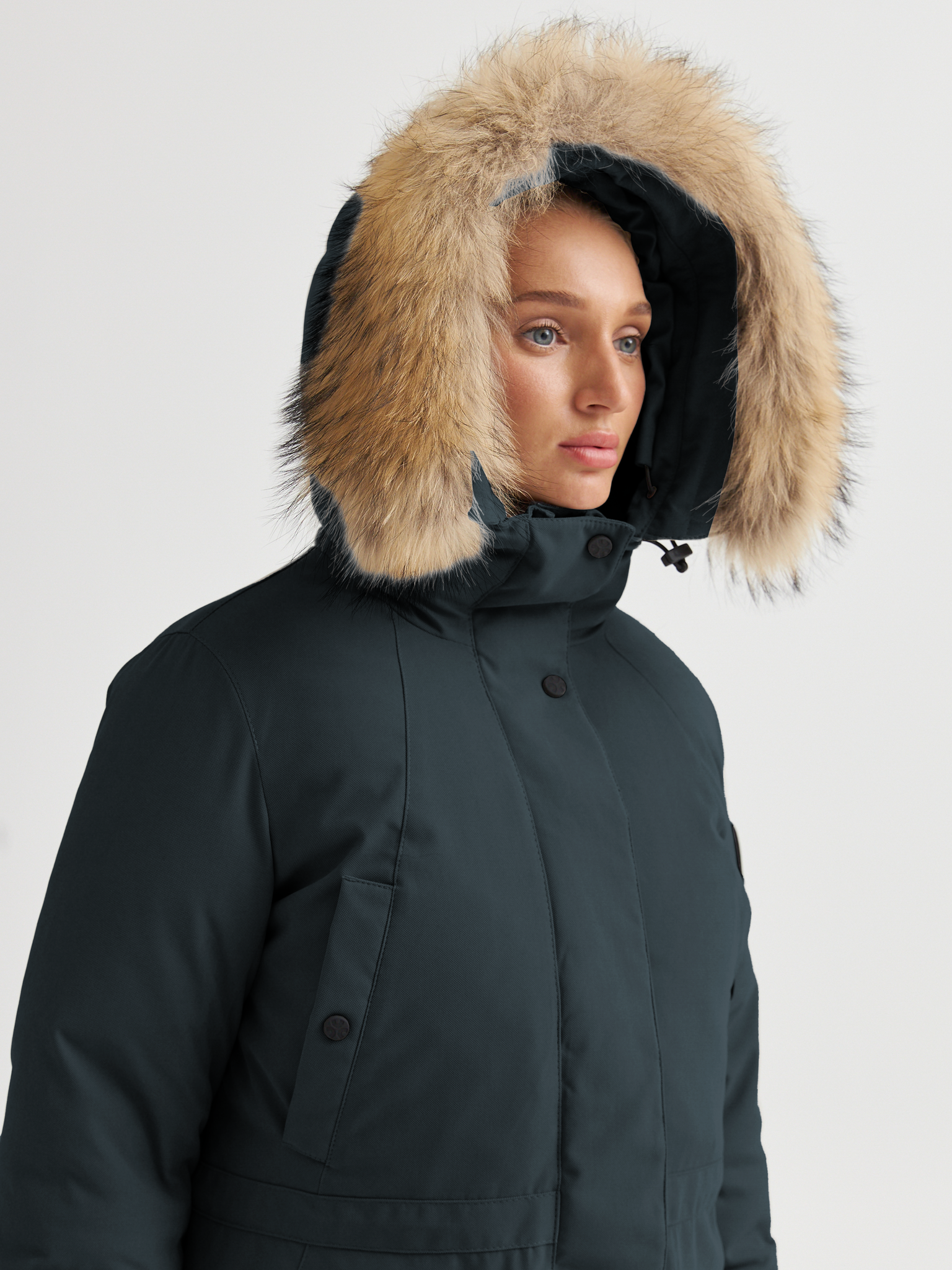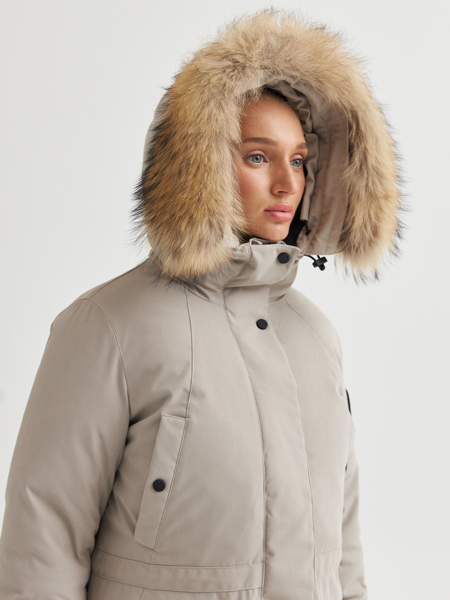 Женская парка - прекрасный способ выглядеть стильно даже в сильные морозы. Классическая в стилевом направлении модель имеет компактный силуэт , универсальную длину с характерным для парки оформлением низа спинки и удобный регулируемый капюшон. Богатый натуральный мех расположен на внутренней обтачке капюшона, что препятствует проникновению холода . Удобный вместительный карман выполнен на тёплой подкладке- комфортное решение для обогрева рук.