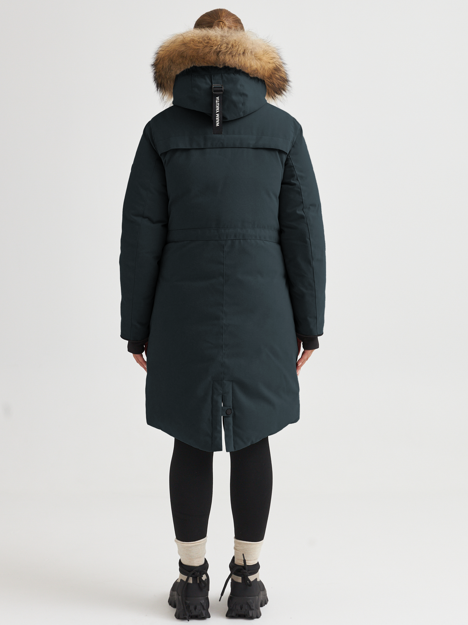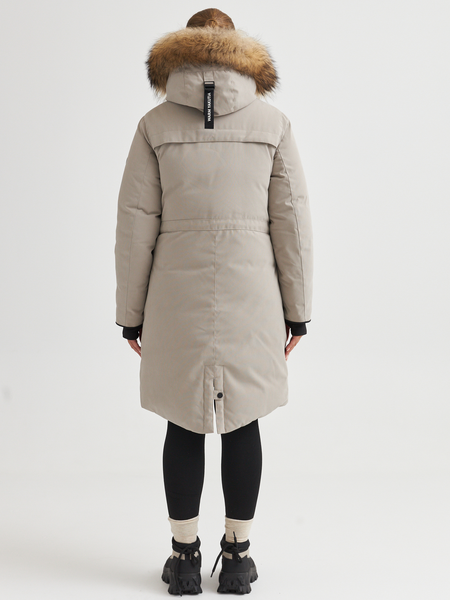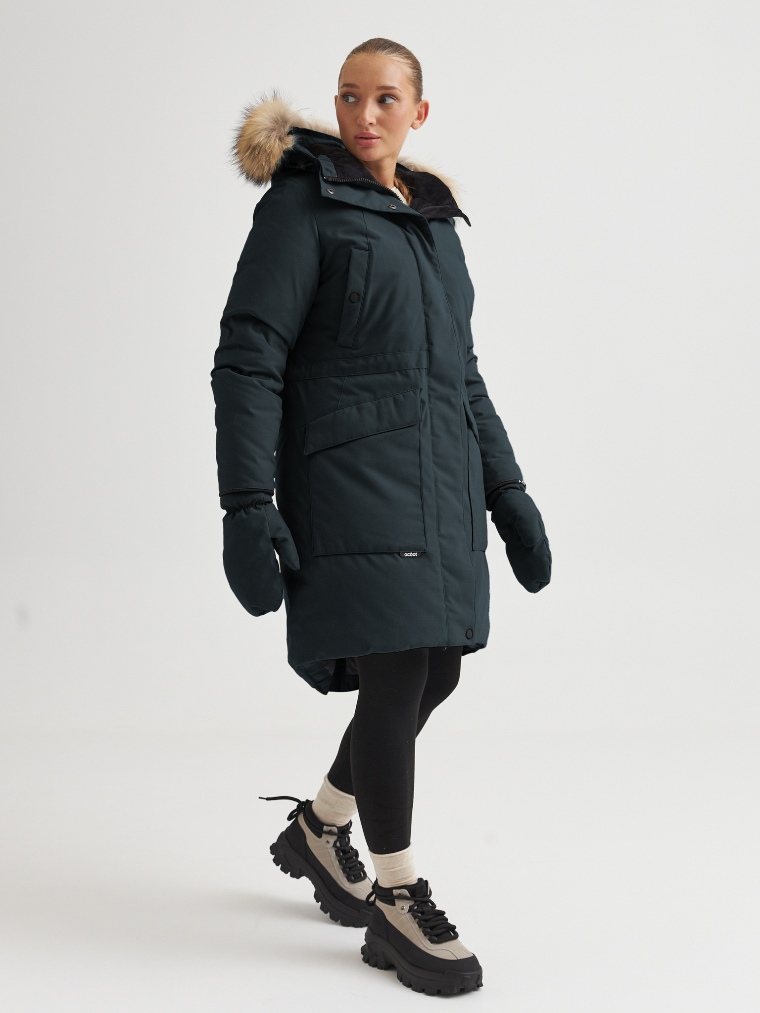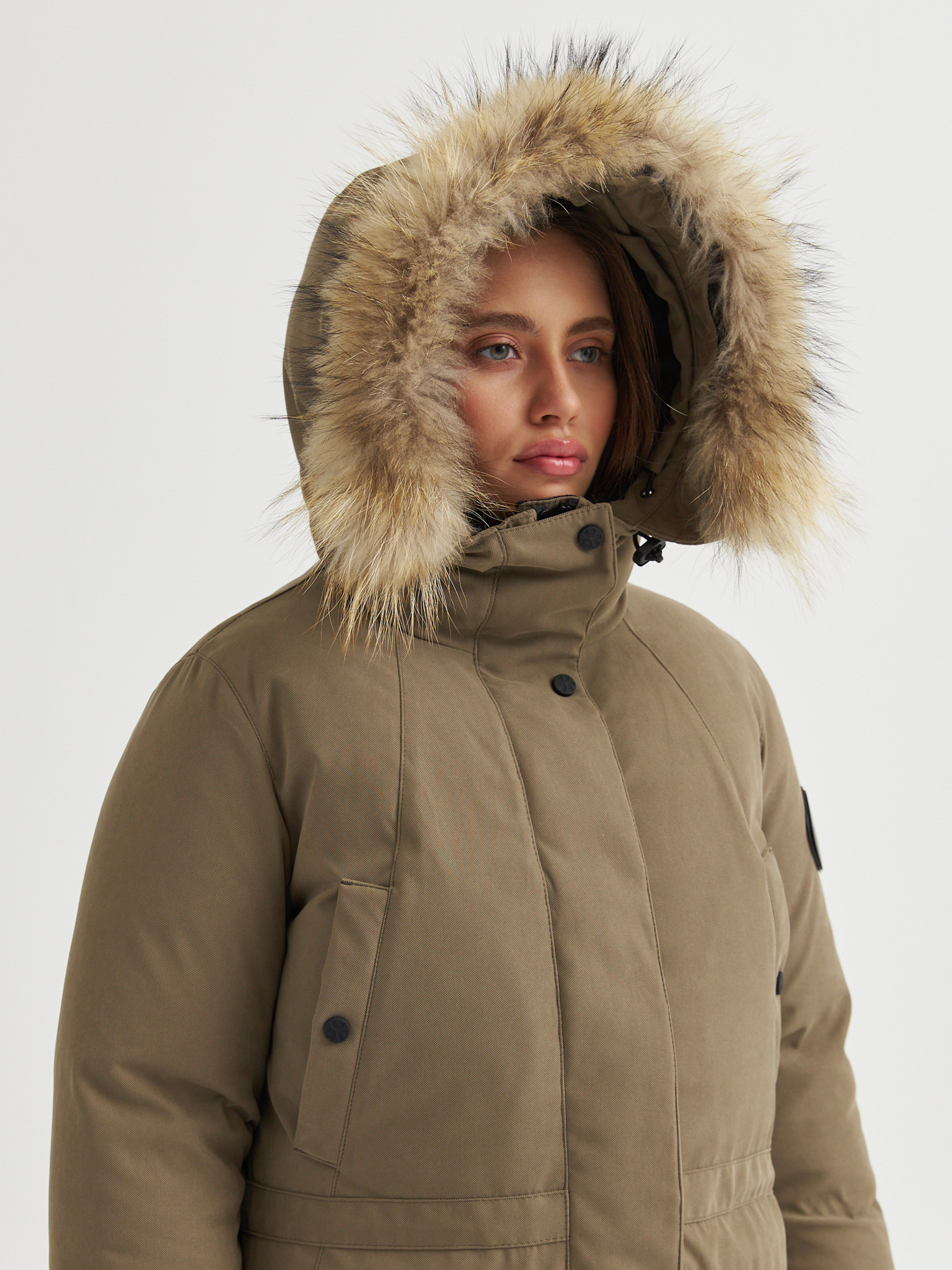 Женская парка - прекрасный способ выглядеть стильно даже в сильные морозы. Классическая в стилевом направлении модель имеет компактный силуэт , универсальную длину с характерным для парки оформлением низа спинки и удобный регулируемый капюшон. Богатый натуральный мех расположен на внутренней обтачке капюшона, что препятствует проникновению холода . Удобный вместительный карман выполнен на тёплой подкладке- комфортное решение для обогрева рук.