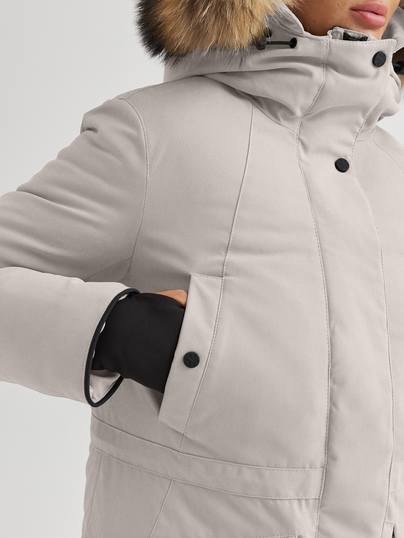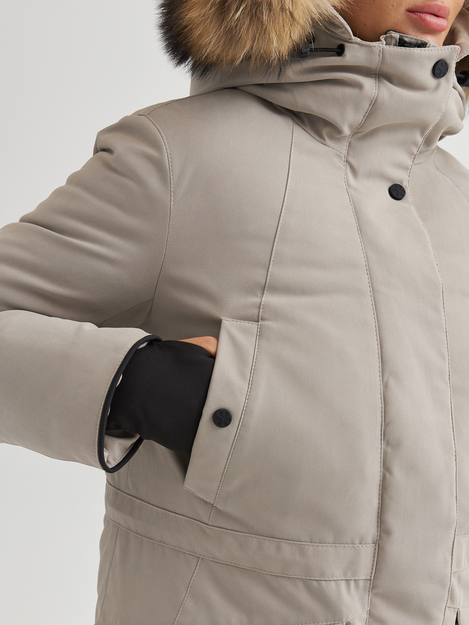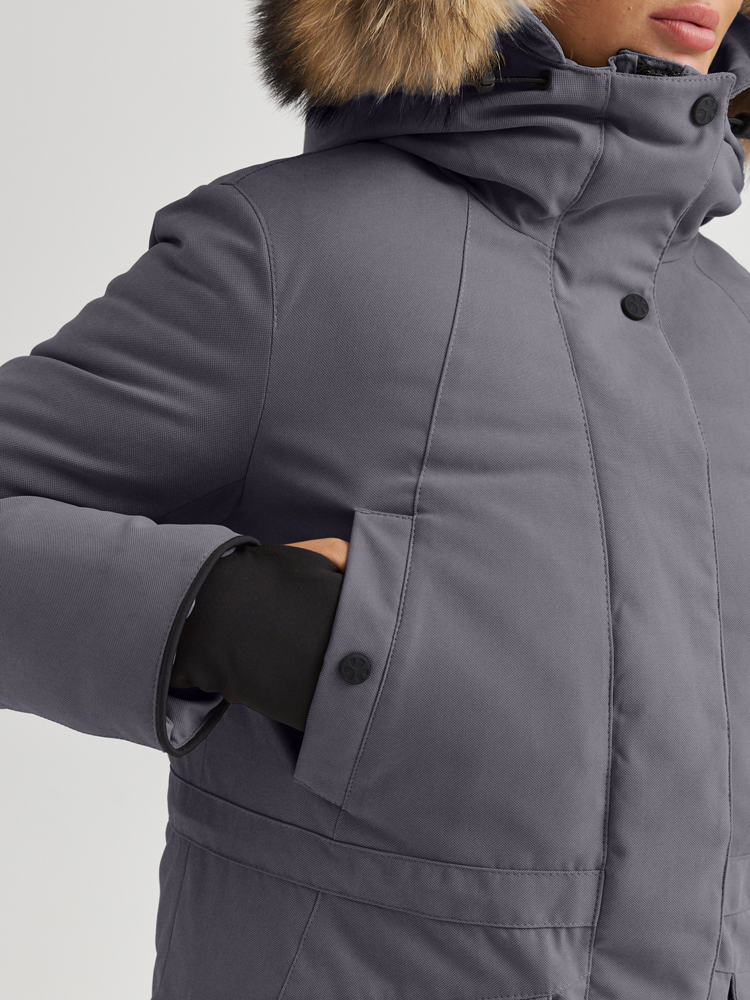 Парка отлично защищает от мороза, ветра и влаги, благодаря мембранной технологии ткани, при этом дышит, что необходимо при перепадах температур.