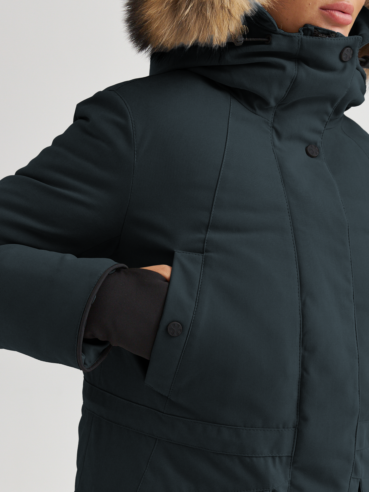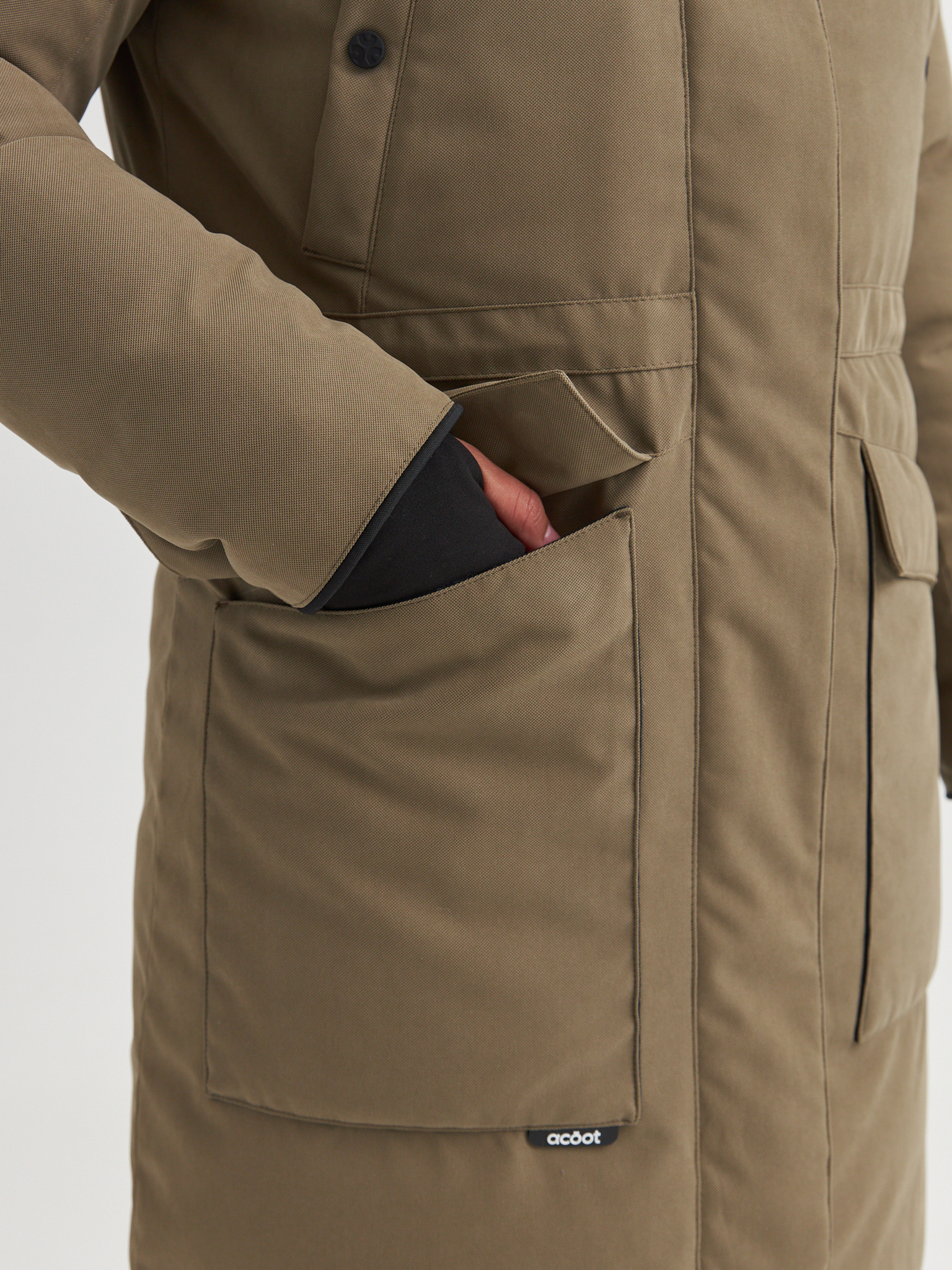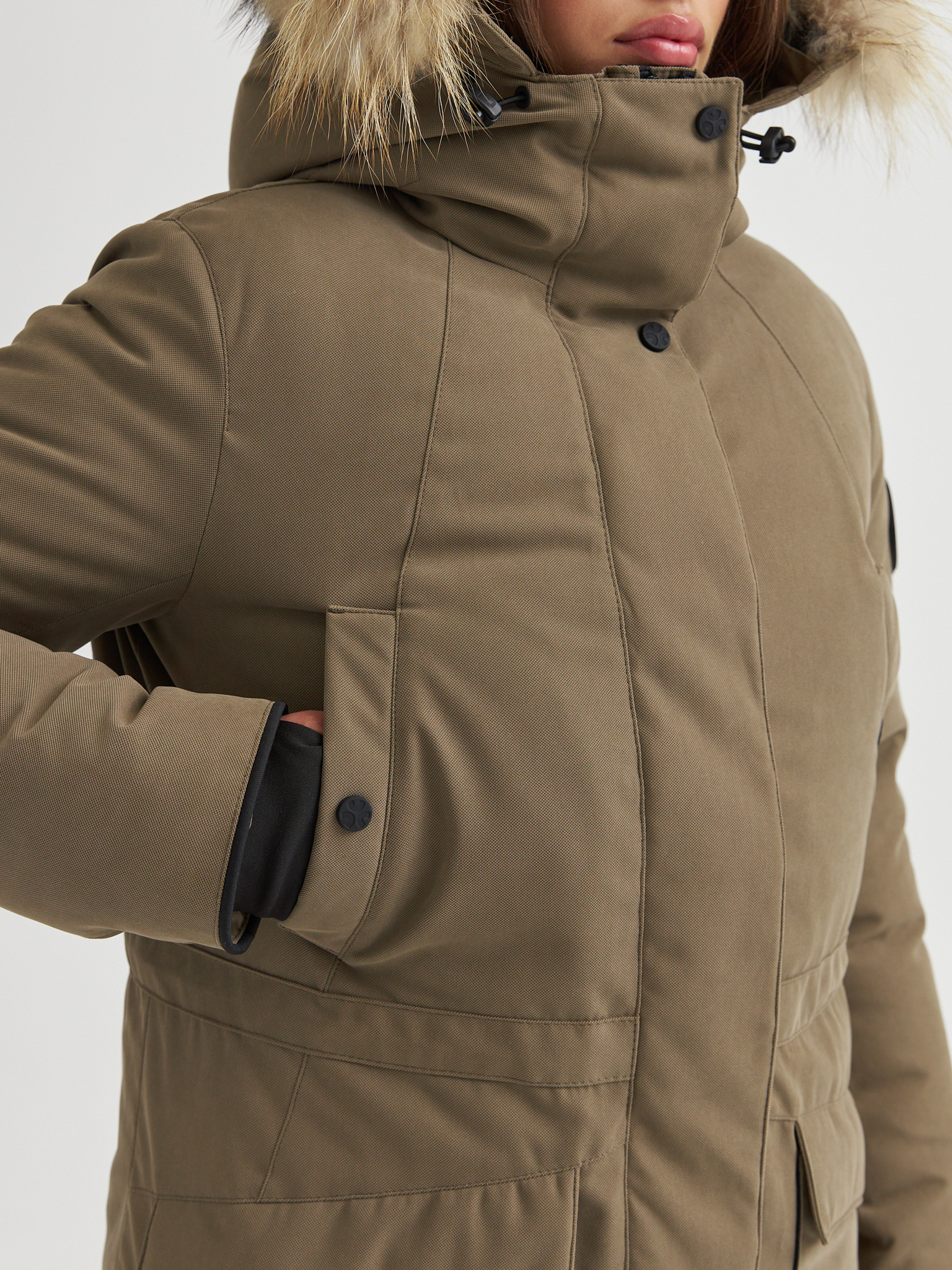 Парка отлично защищает от мороза, ветра и влаги, благодаря мембранной технологии ткани, при этом дышит, что необходимо при перепадах температур.