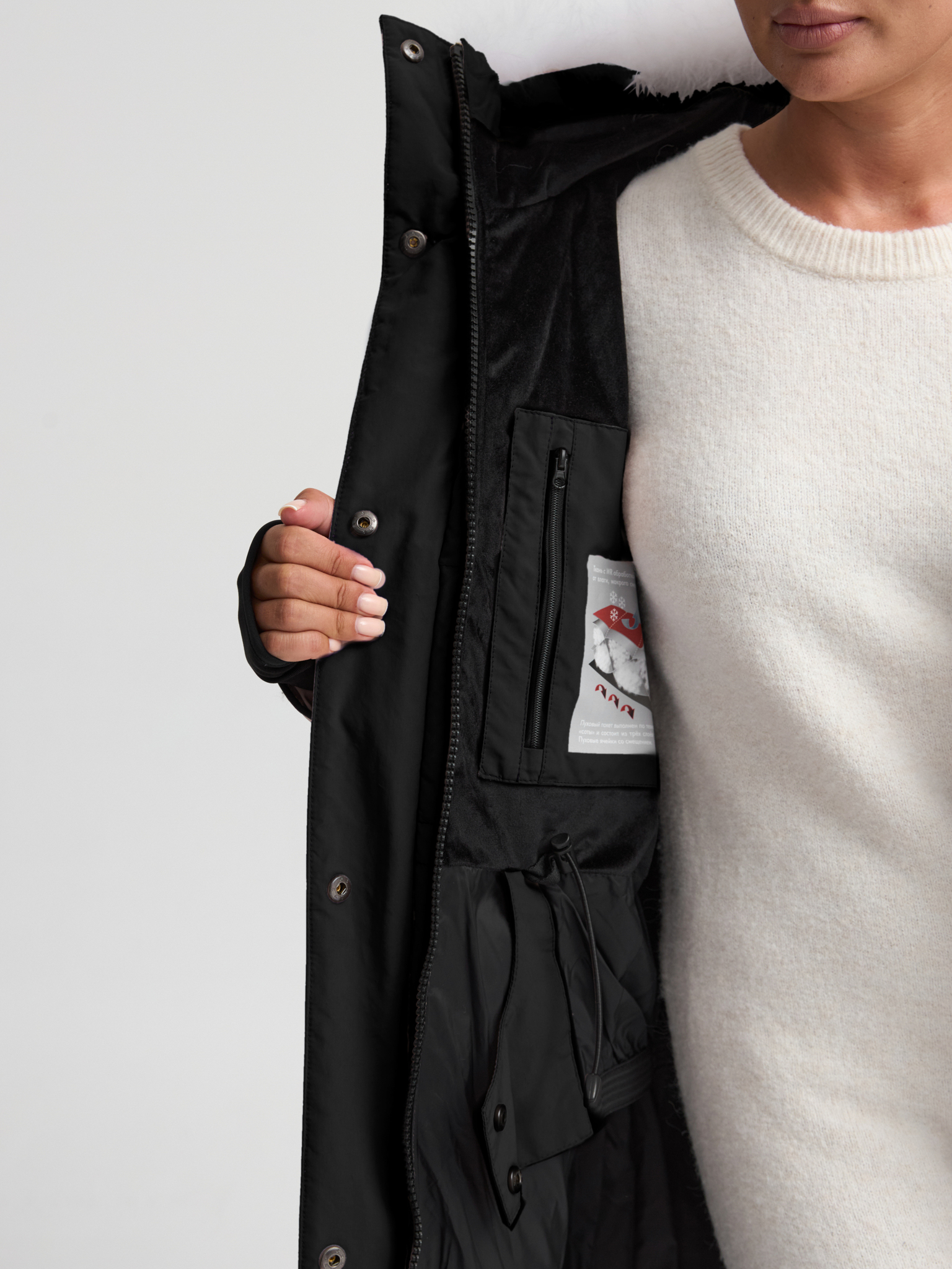 Дополнительно на страже тепла – вельбоа до талии на внутреннем пакете , манжеты- полуперчатки